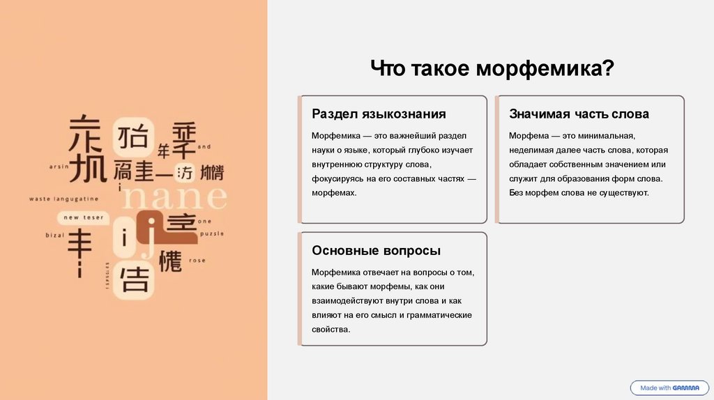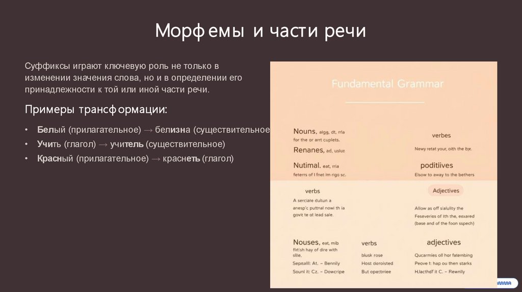 Морф емы и части речиСуффиксы играют ключевую роль не только в