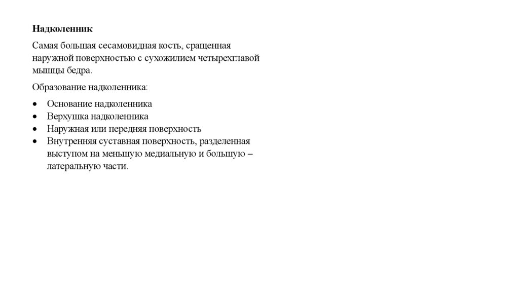 костью, fibula, в области колена находится большая сесамовидная кость – надколенник, patella.