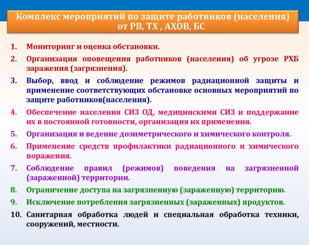 Комплекс мероприятий по защите работников (населения)от РВ, ТХ , АХОВ, БС