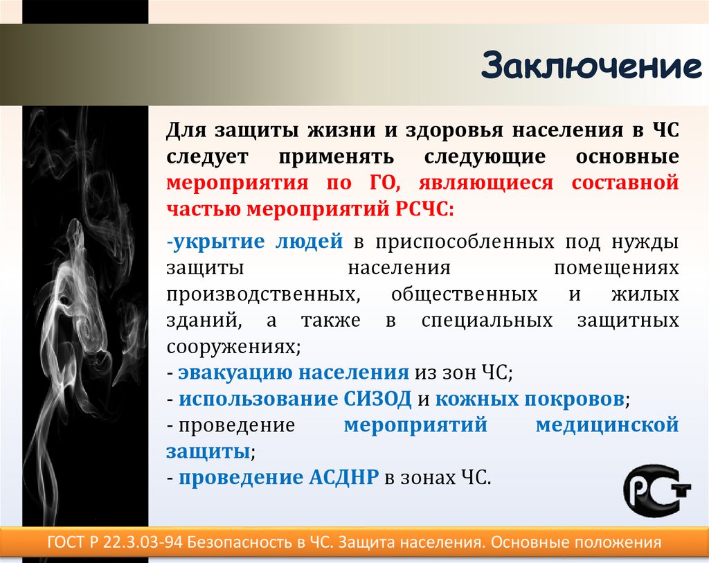 ЗаключениеДля защиты жизни и здоровья населения в ЧС