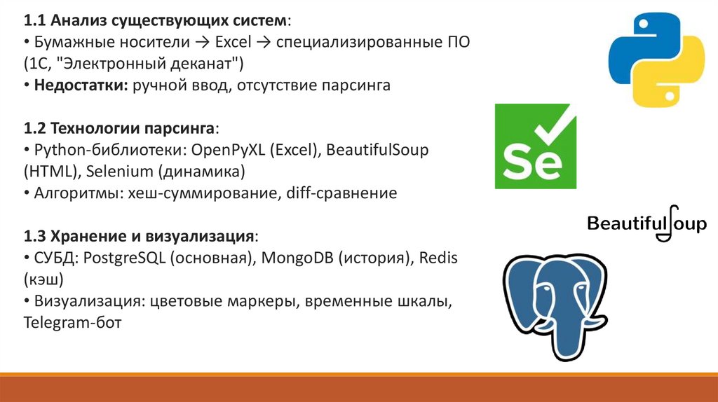 1.1 Анализ существующих систем:• Бумажные носители → Excel → специализированные ПО