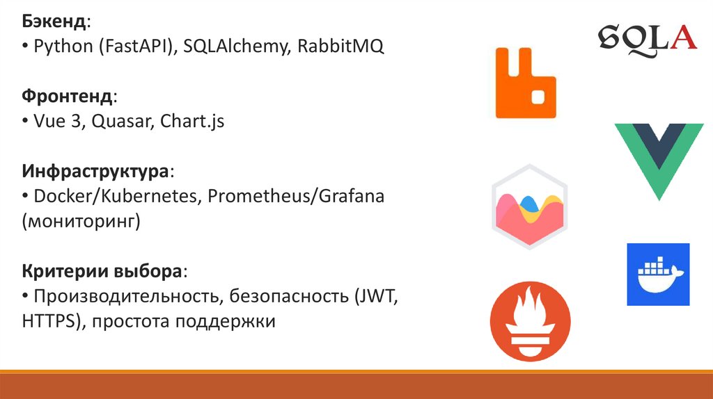 Бэкенд:• Python (FastAPI), SQLAlchemy, RabbitMQ