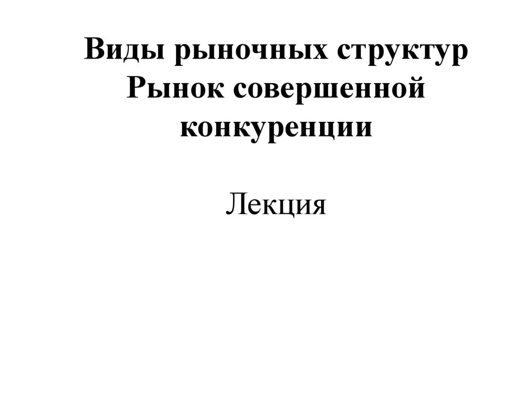 1. Виды рыночных структур Рынок совершенной конкуренции Лекция