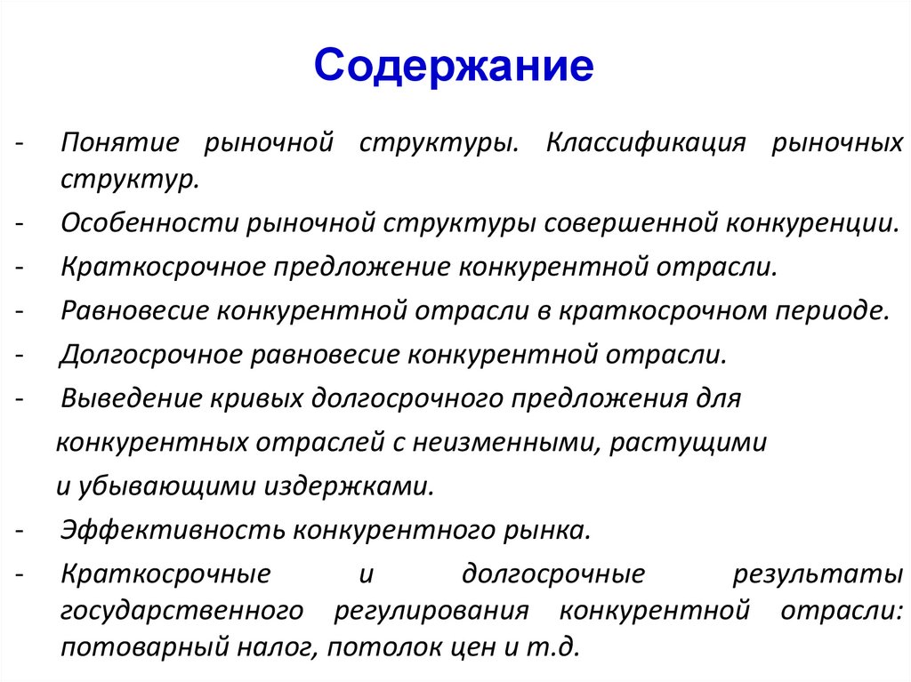 Виды рыночных структур. Рынок совершенной конкуренции. Лекция