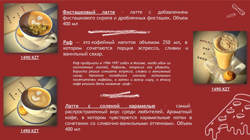 Фисташковый латте – латте с добавлениемфисташкового сиропа и дробленных фисташек. Объем
