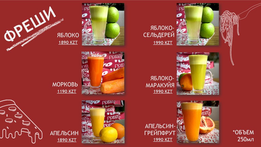 слоями: сначала тягучий сироп, потом яркий сок и два шота кофе.