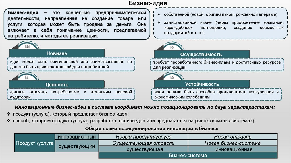 Инновационные бизнес-идеи в системе координат можно позиционировать по двум характеристикам: