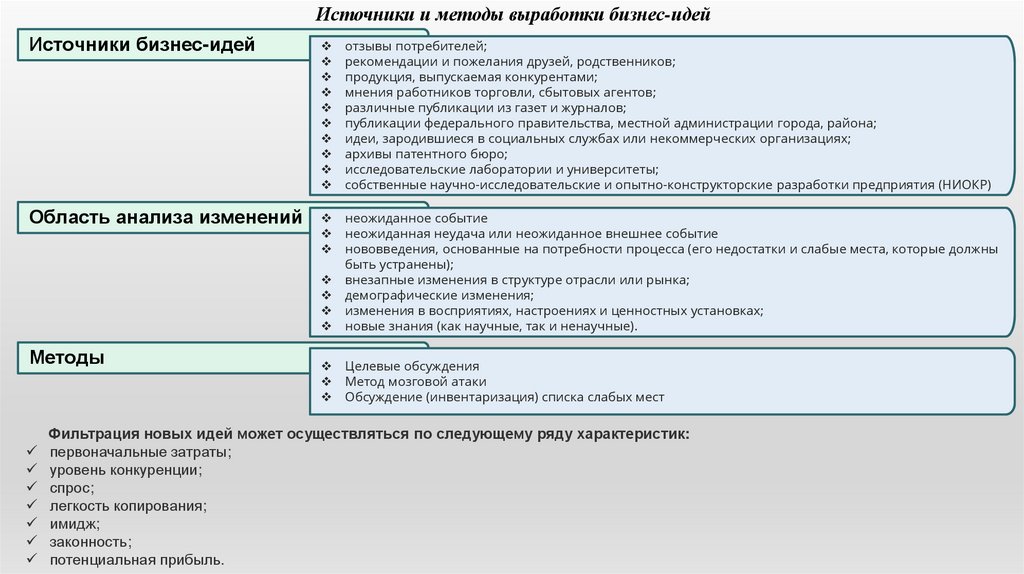 Источники и методы выработки бизнес-идейИсточники бизнес-идей