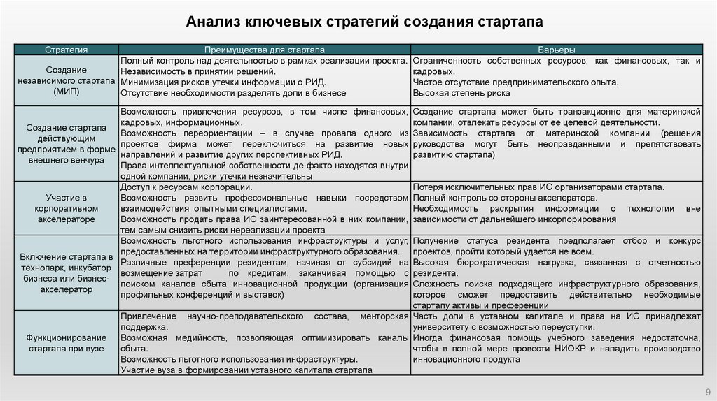 Фильтрация новых идей может осуществляться по следующему ряду характеристик: