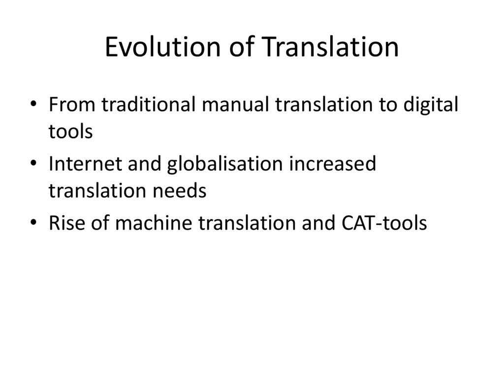 Digital Tools in Translation• CAT-tools (Trados, MemoQ, Wordfast)