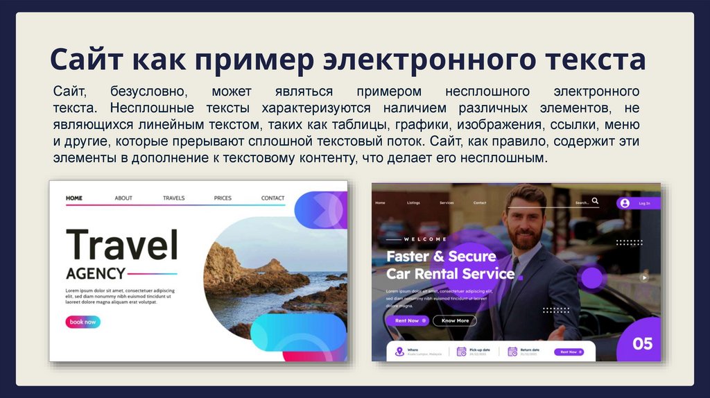 текста. Несплошные тексты характеризуются наличием различных элементов, не