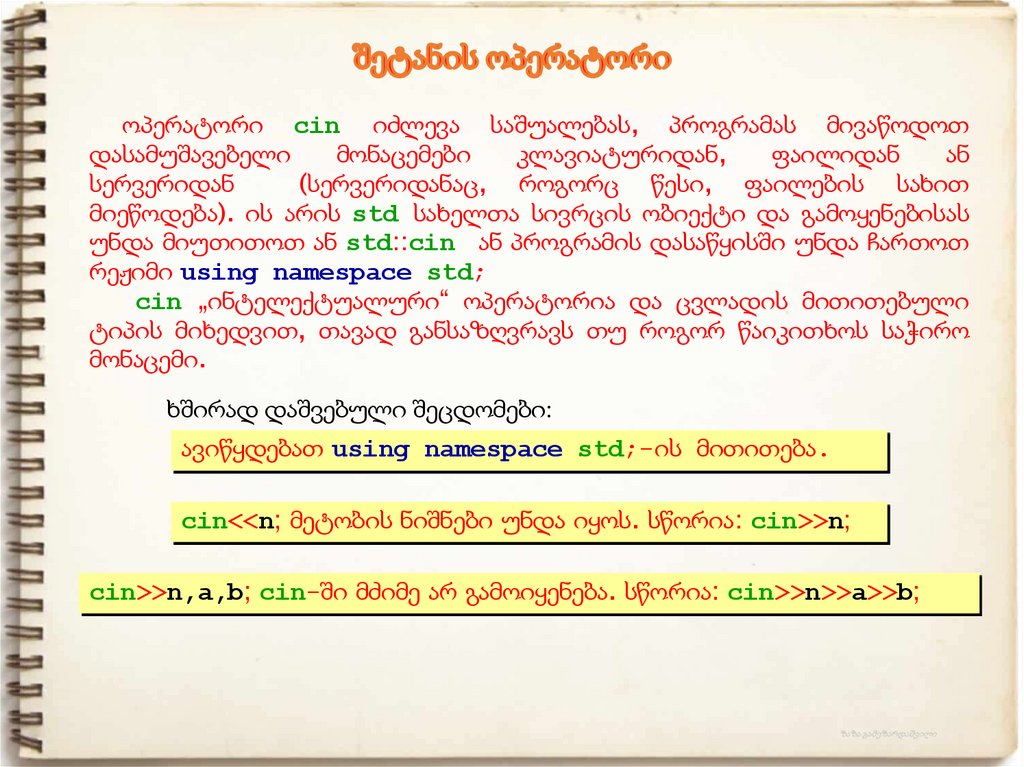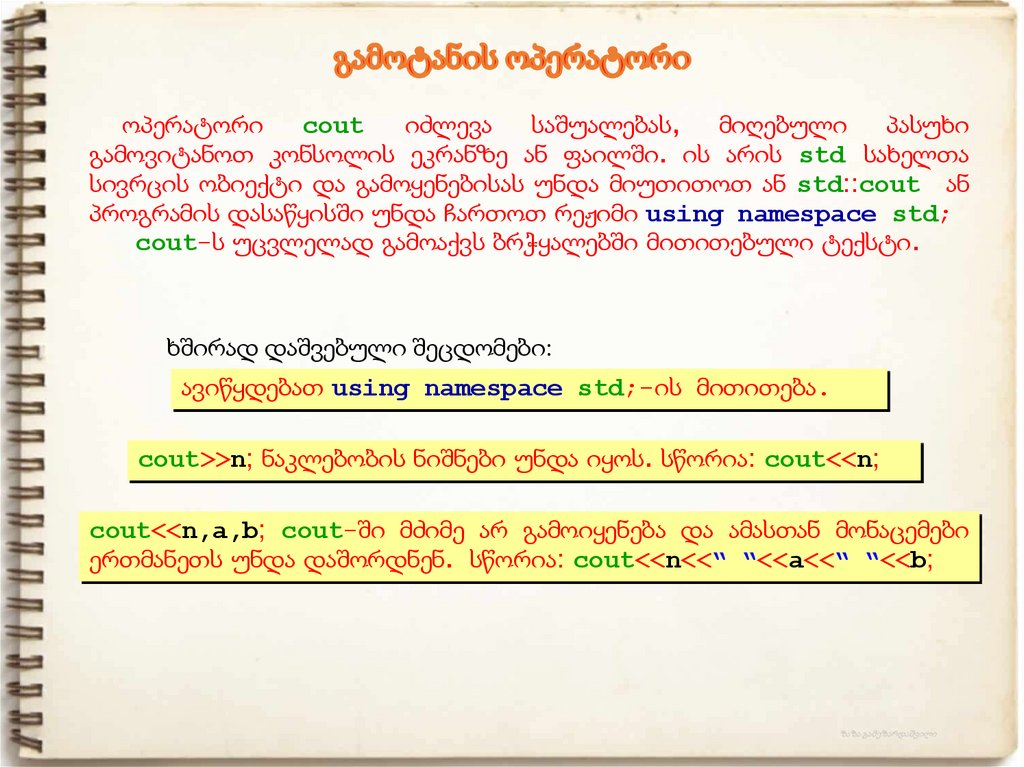 ინსტრუქციებს. C++ ენის ანბანში გამოყენებული სიმბოლოების სიმრავლე