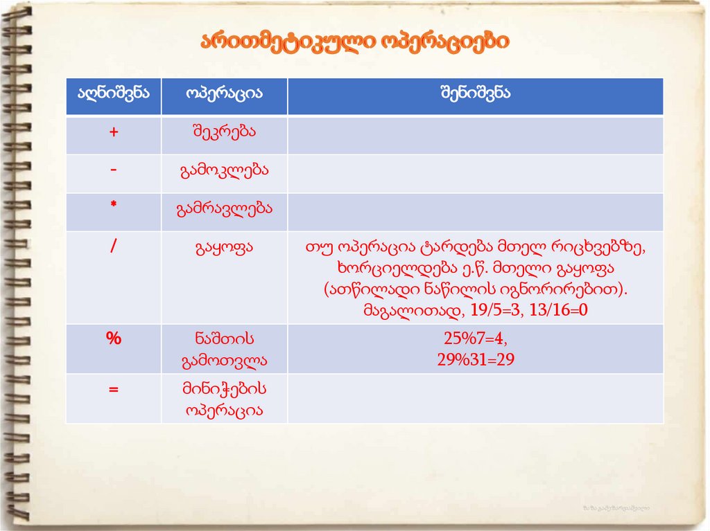 ოპერატორებში. იდენტიფიკატორის შერჩევისას უნდა გაითვალისწინოთ, რომ: