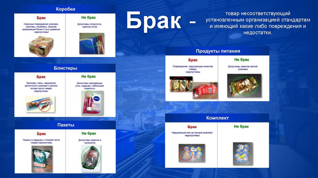 БРАК – товар несоответствующий установленныморганизацией стандартам и имеющий какие-либо
