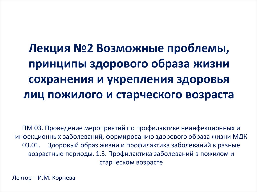1. Лекция №2 Возможные проблемы, принципы здорового образа жизни сохранения и укрепления здоровья лиц пожилого и старческого