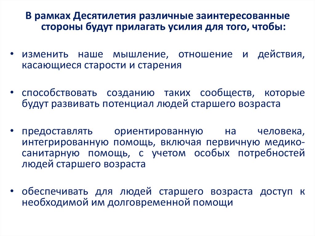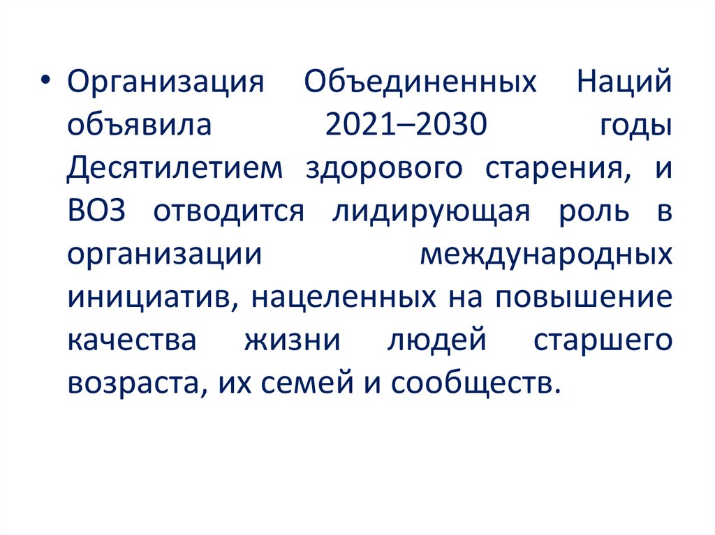 Десятилетием здорового старения, и
