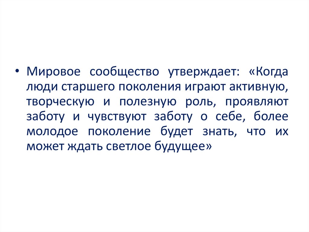 • Мировое сообщество утверждает: «Когдалюди старшего поколения играют активную,