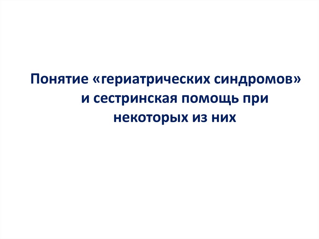 Понятие «гериатрических синдромов»и сестринская помощь при