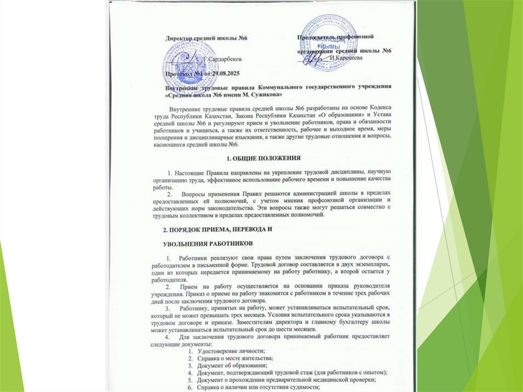 Внутренние трудовые правила Коммунального государственного учреждении «Средняя школа №б имени М. Сужикова»