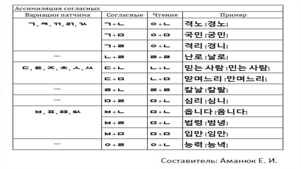 оканчивается на ㄴ, ㅁ, то ㄱ, ㄷ, ㅅ, ㅈ, идущие после неё,
