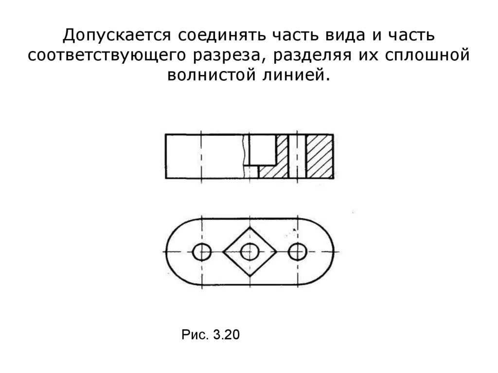 Допускается соединять часть вида и частьсоответствующего разреза, разделяя их сплошной