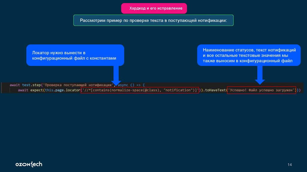 Хардкод и его исправлениеРассмотрим пример по проверке текста в поступающей нотификации: