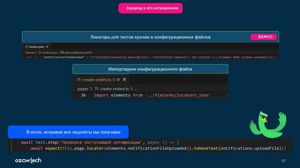 Хардкод и его исправлениеЛокаторы для тестов храним в конфигурационных файлов