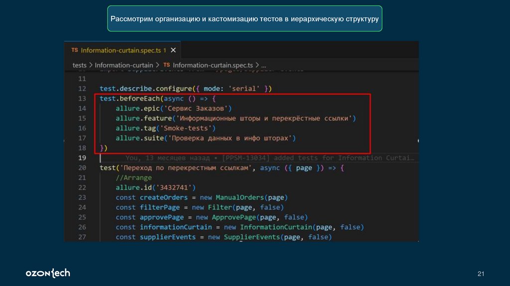 Рассмотрим организацию и кастомизацию тестов в иерархическую структуру21