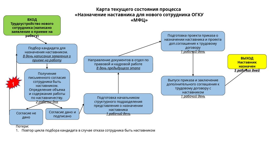 1. Повтор цикла подбора кандидата в случае отказа сотрудника быть наставником