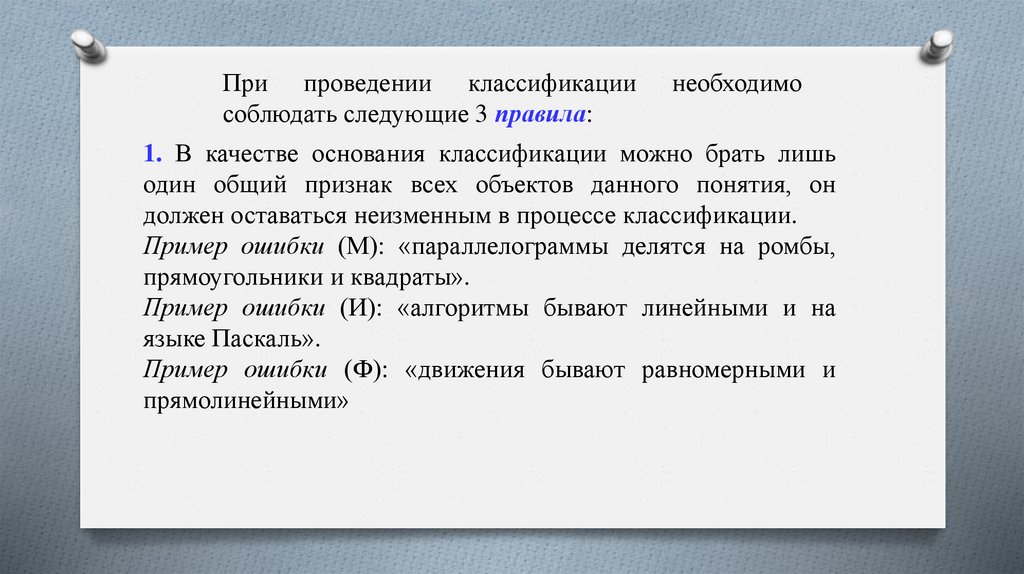 Каковы 3 правила работы на первом этапе методики формирования понятий?