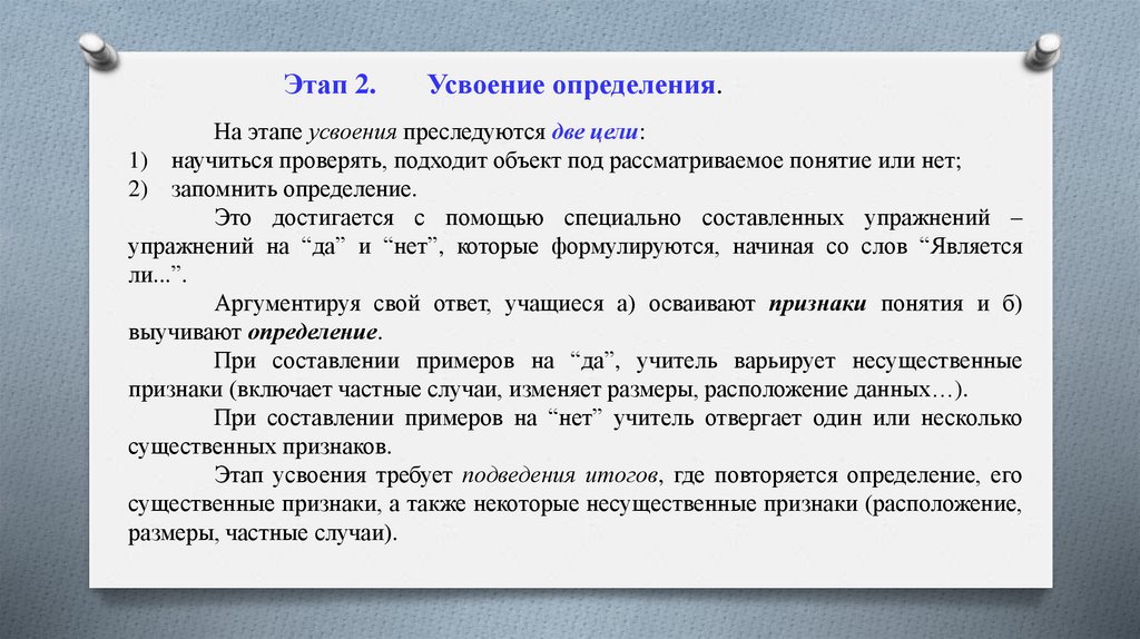10. Какие 2 цели этапа усвоения определения понятия выделяют?