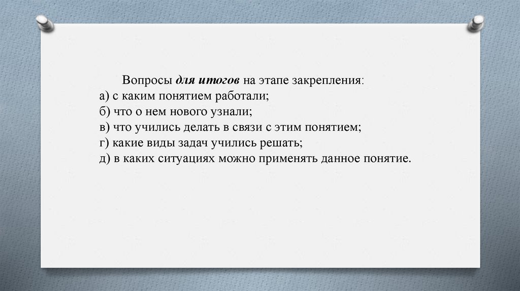 Вопросы для итогов на этапе закрепления:а) с каким понятием работали;