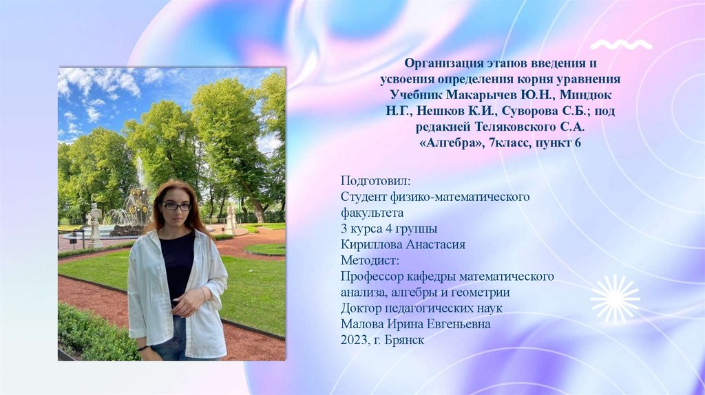 Проект 1. Организация этапов введения и усвоенияопределения корня уравнения (проект Кирилловой