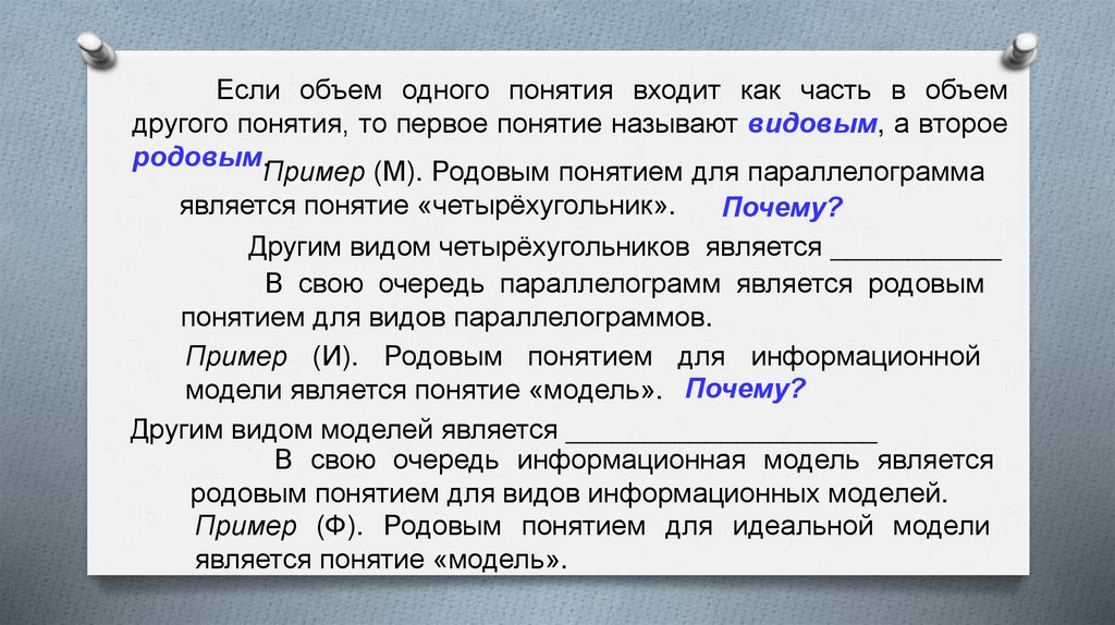 Если объем одного понятия входит как часть в объемдругого понятия, то первое понятие называют видовым, а второе
