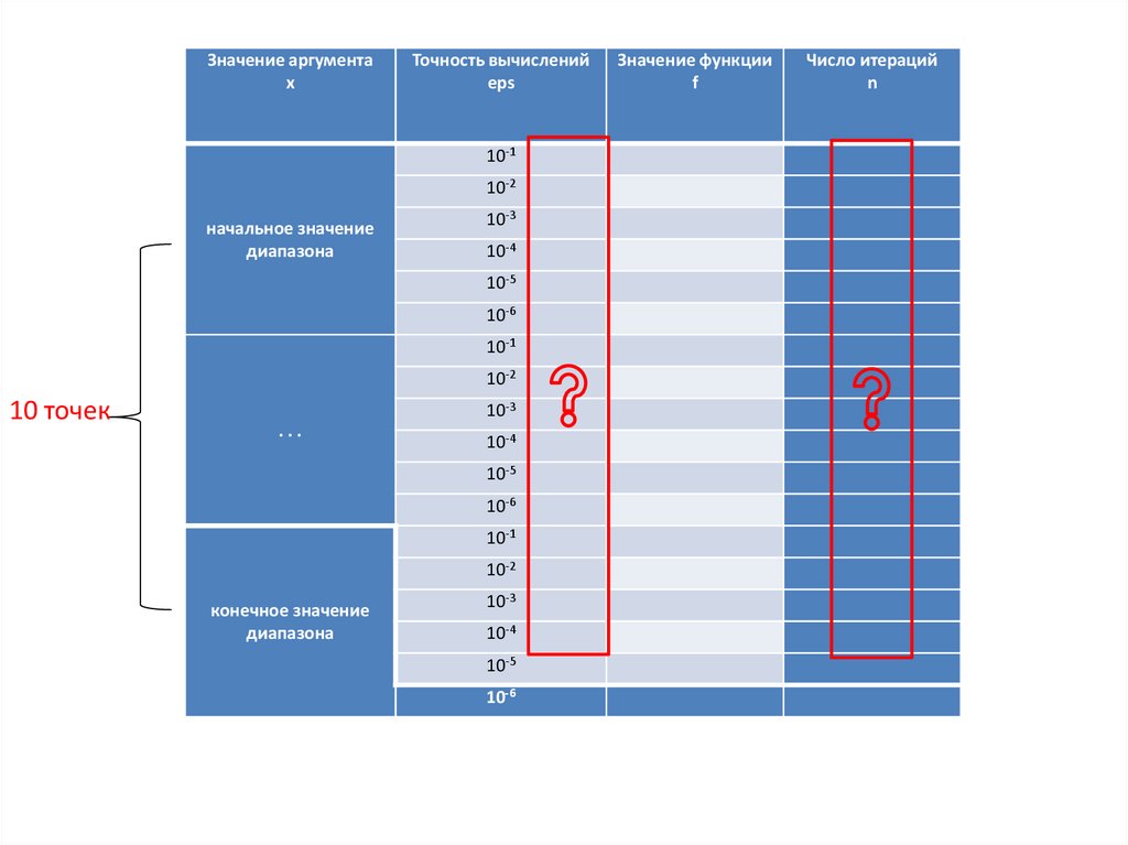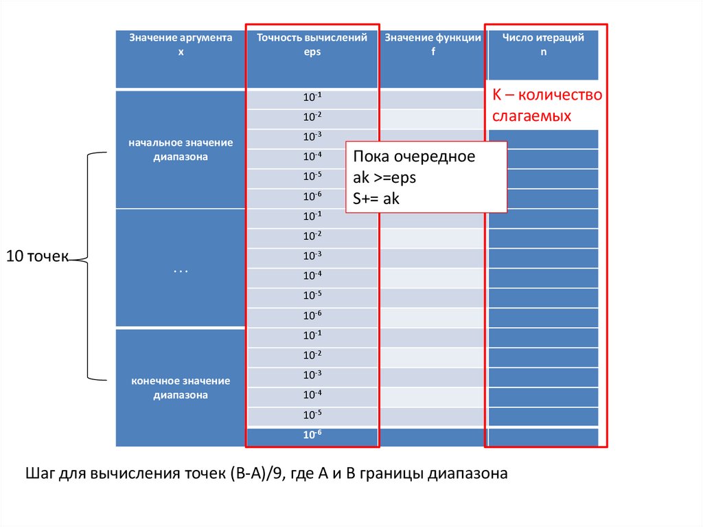 1) Цикл по 10 точкам:2) Начальные присвоения a1, k, S;