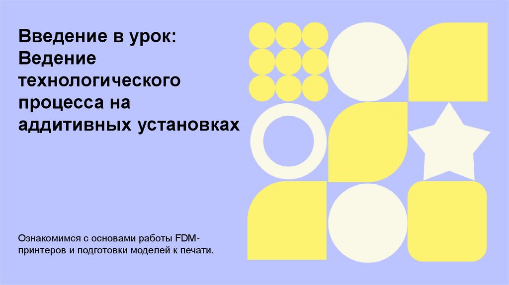 Ведение технологического процесса на аддитивных установках. Введение в урок