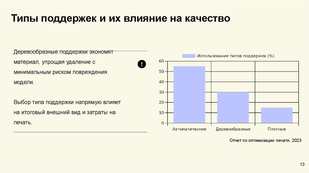 Использование поддержек должно соответствовать сложности геометрии: минимизация