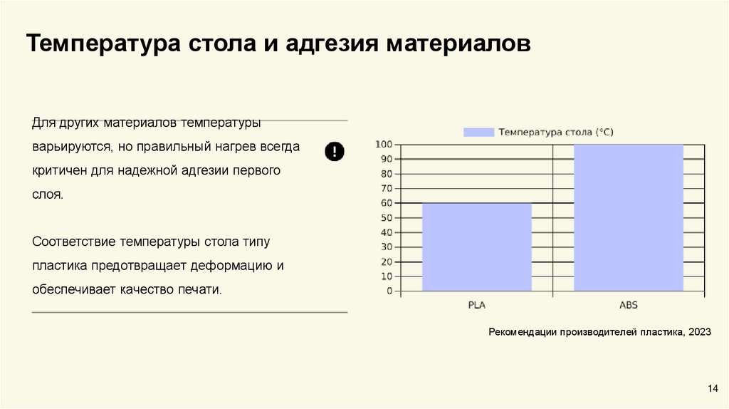 Температура стола и адгезия материаловДля других материалов температуры