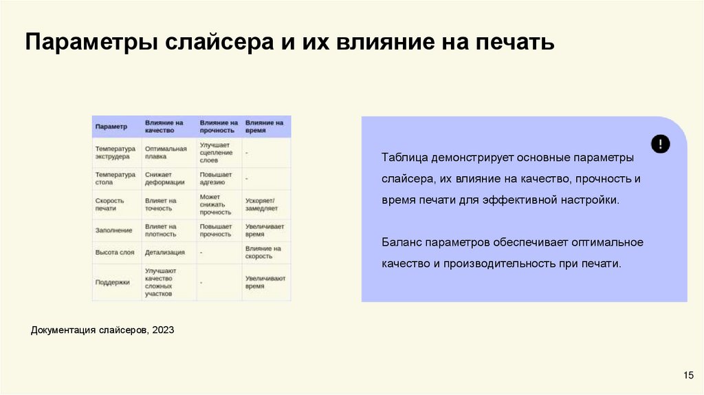 Параметры слайсера и их влияние на печатьТаблица демонстрирует основные параметры