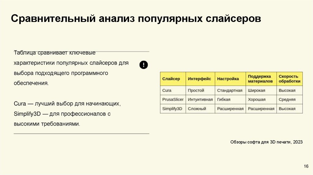 Сравнительный анализ популярных слайсеровТаблица сравнивает ключевые