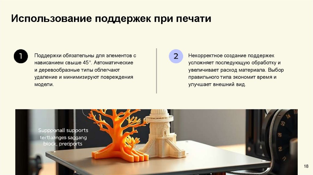 поддержки при печати, что увеличивает время и