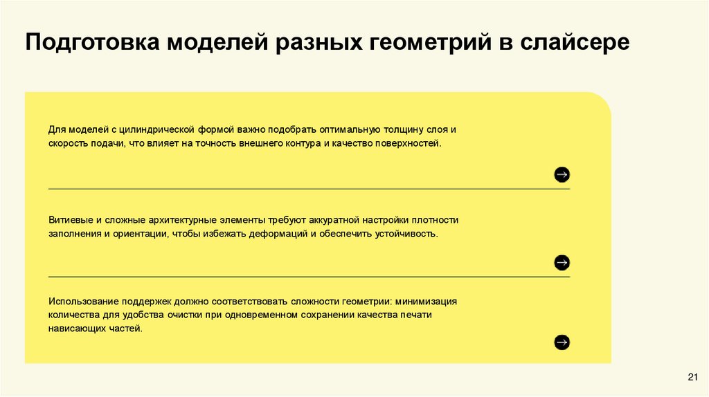 Подготовка моделей разных геометрий в слайсереДля моделей с цилиндрической формой важно подобрать оптимальную толщину слоя и