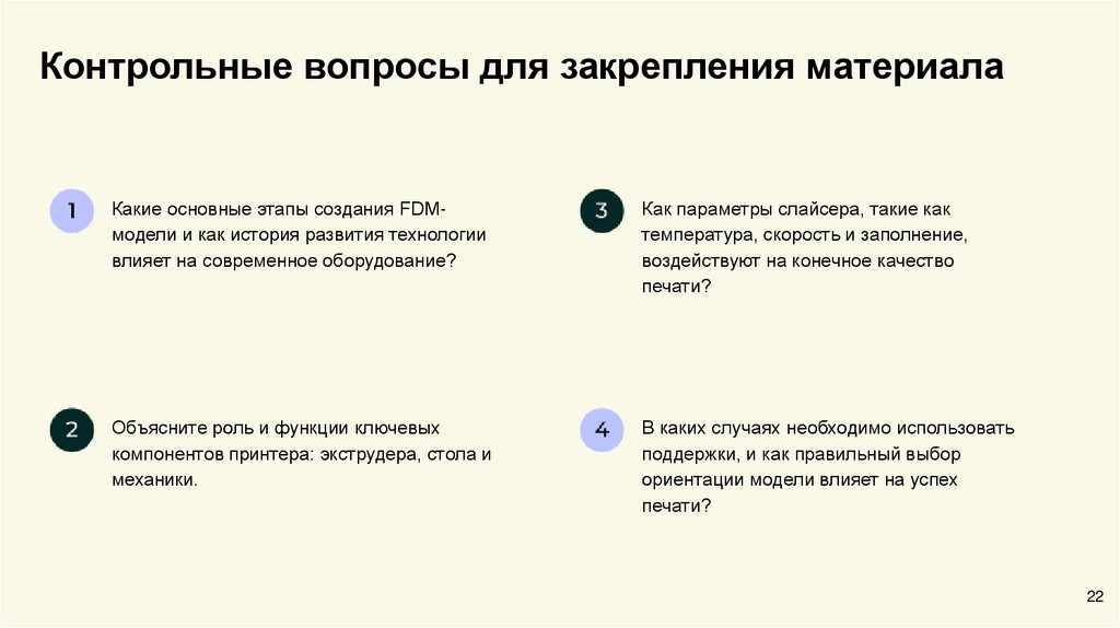 Контрольные вопросы для закрепления материалаКакие основные этапы создания FDMмодели и как история развития технологии