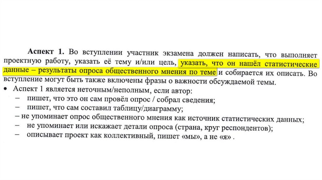 opinion on the subject of the project.