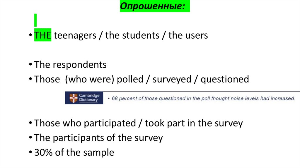 Опрошенные:• THE teenagers / the students / the users