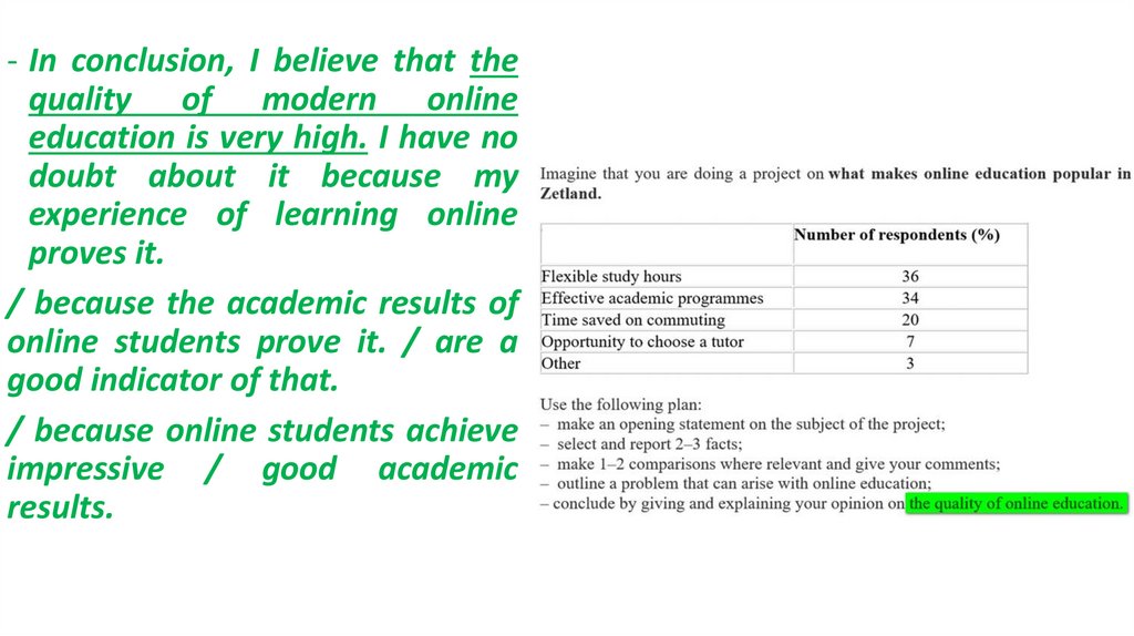 - In conclusion, I believe that thequality of modern online