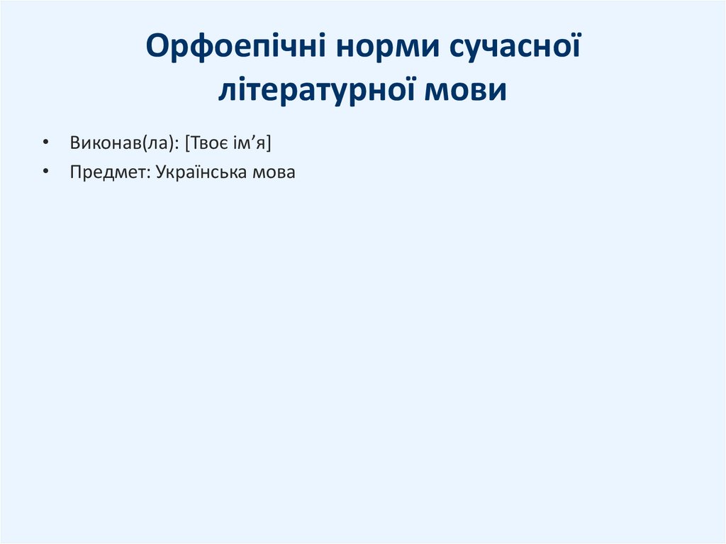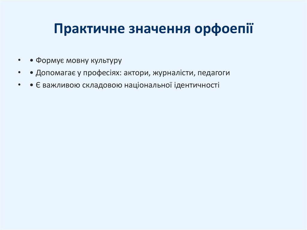 Висновок• Орфоепічні норми сучасної української літературної мови – це основа