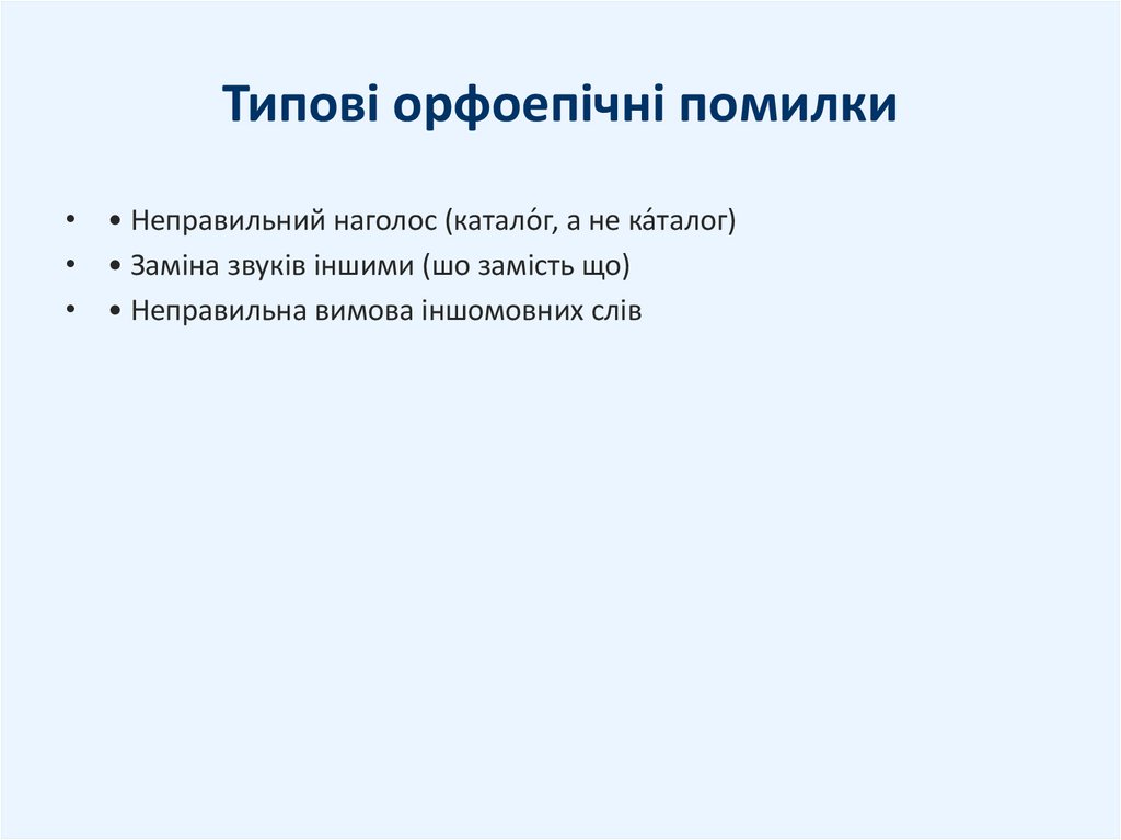 Типові орфоепічні помилки• • Неправильний наголос (катало́ г, а не ка́талог)
