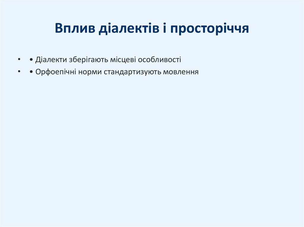 Вплив діалектів і просторіччя• • Діалекти зберігають місцеві особливості