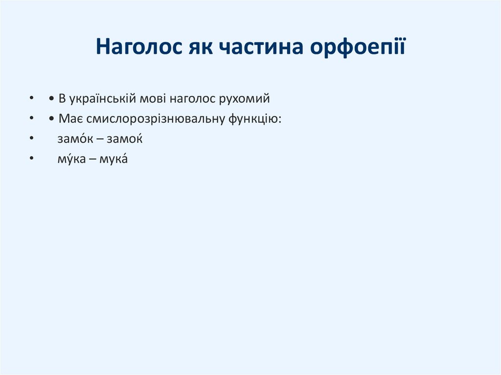 Наголос як частина орфоепії• • В українській мові наголос рухомий